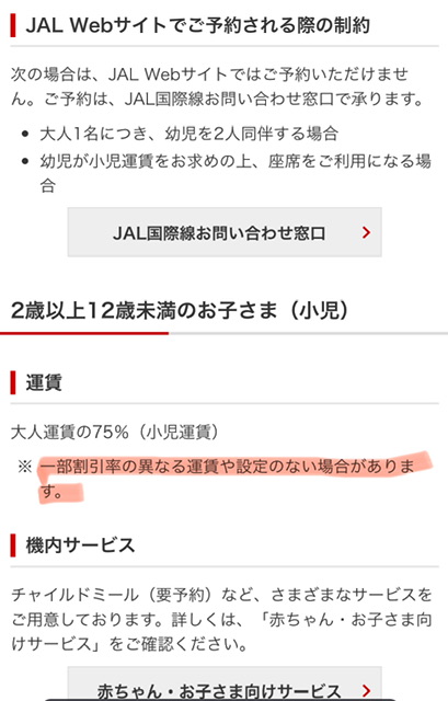 JALのウェブサイトに、2歳になったら、小児運賃 (大人の75%)とあって、