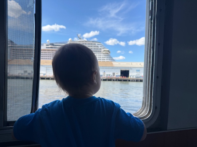 キャプテン気取りでフェリーライドを楽しんでいたベイビーです。